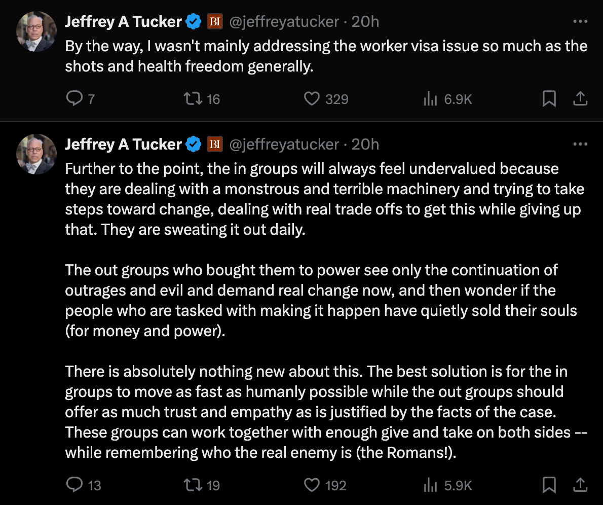 “MAGA/MAHA/DOGE are facing internal splits and acrimony between in and out groups precisely in the way we would expect from any reformers seeking to overthrow the old and bring in the new.
