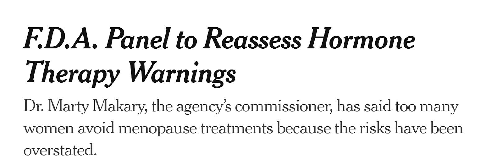 They say history doesn’t repeat, but it rhymes. In modern medicine, it rhymes with silence, panic, and obedience. The fallout from that blind spot is only now being reversed. “Women live longer, feel better. The benefits are overwhelming”, said the FDA’s Dr. Marty Makary– just days ago.
