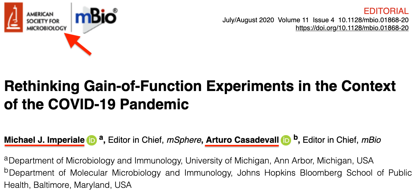 He also named professors Michael Imperiale and Arturo Casadevall as obfuscators, as well as Vincent Ranciello, who runs a Youtube channel that cheerleads for gain-of-function studies, while ignoring and downplaying the dangers.