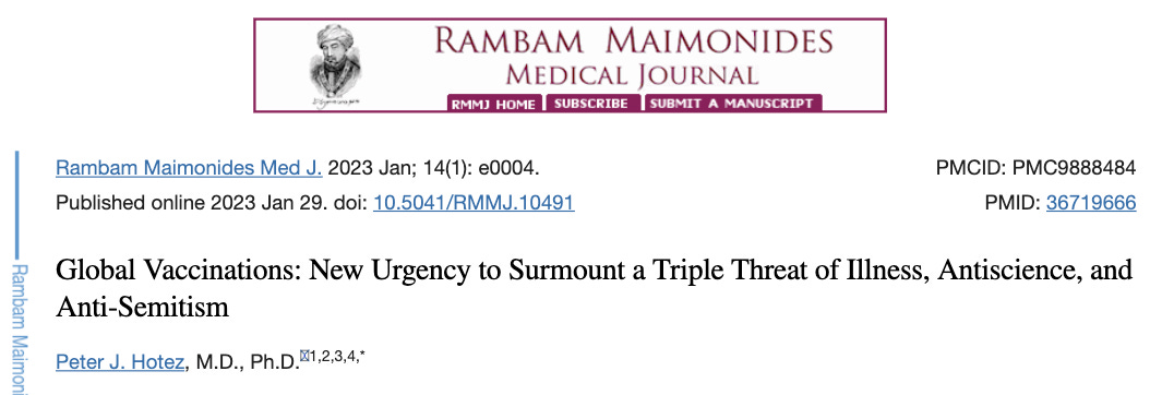 Dr. Hotez cites the following in his recent editorial published in the Rambam Maimonides Med Journal: