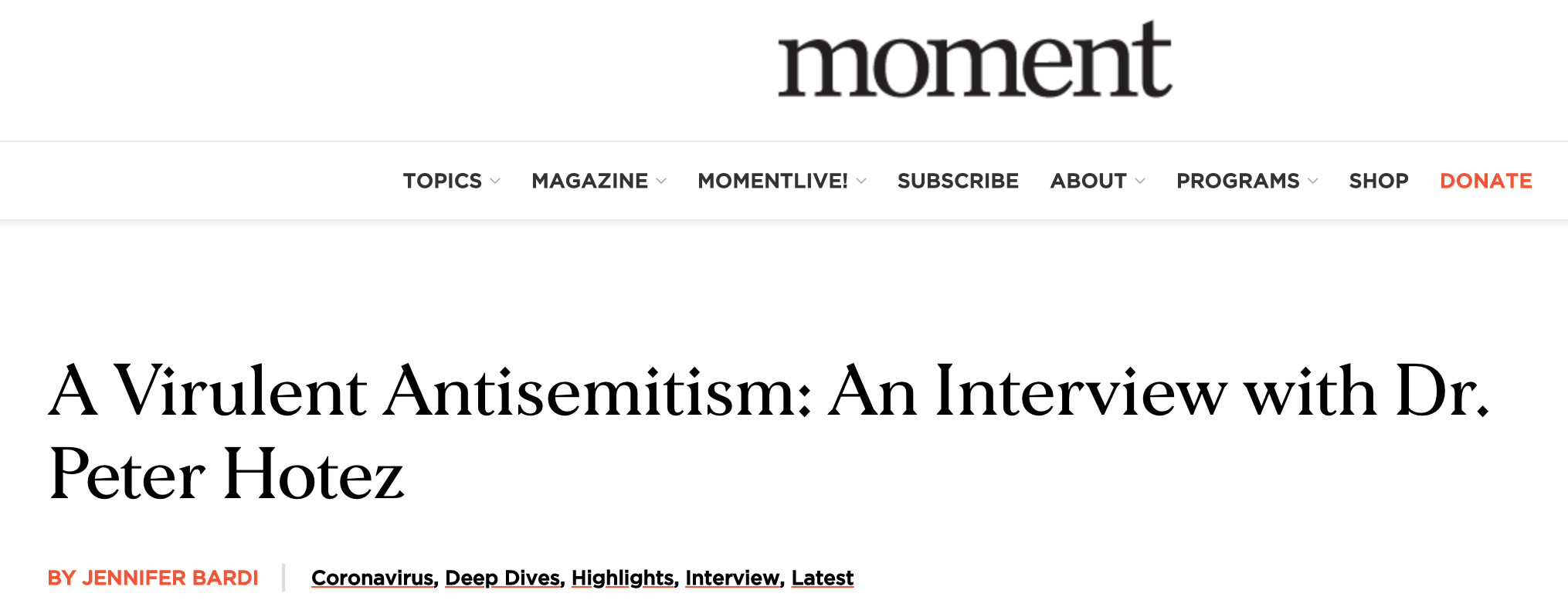 Dr. Peter Hotez has recently published an opinion piece in an obscure academic journal in which he constructs a false equivalence between right wing politics, “Antiscience”, vaccine and vax mandate hesitancy (“Antivaxxer”), and antisemitism.