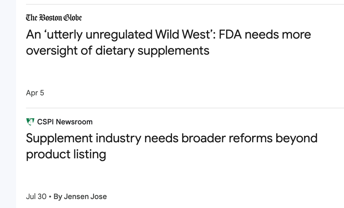But basically, if supplements are more regulated by the federal government in a way that required clinical trials showing benefit, then most of the companies would go out of business and allow pharma to step into the market space.