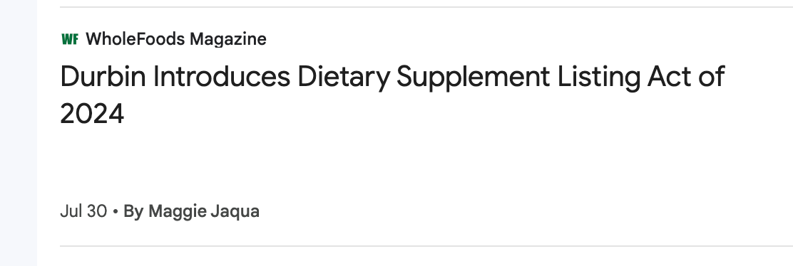 Senator Durbin is once again pushing reforms and even new Acts to “control” the supplement market. To read more about why they want this Act reformed, please read my substack titled “Wellbeing: Dietary Supplements.”