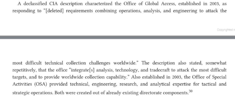 Late CIA expert Jeffrey Richelson, in his 2018 book "The U.S. Intelligence Community” [https://t.co/FTBK7uYZqH], describes the purpose of the Office of Global Access is to “attack the most difficult technical collection challenges worldwide”.