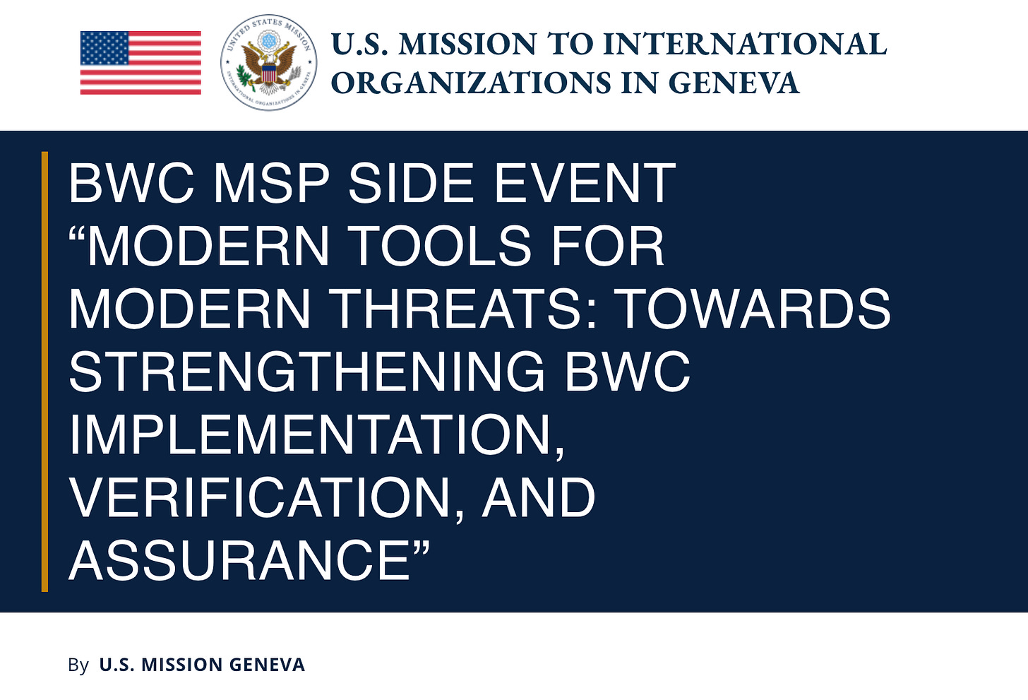 BWC MSP Side Event “Modern Tools for Modern Threats: Towards Strengthening BWC Implementation, Verification, and Assurance”