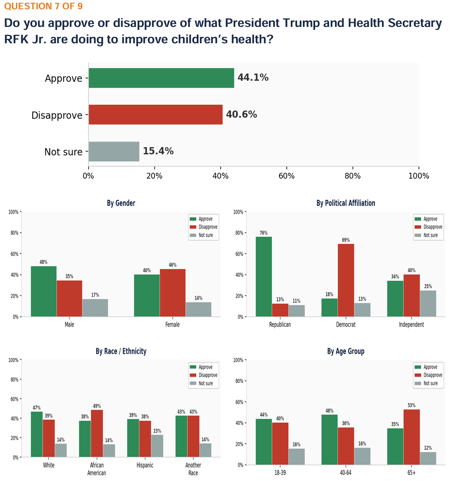 Approval for the Trump and RFK Jr. children’s health efforts (44.1% vs. 40.6%).