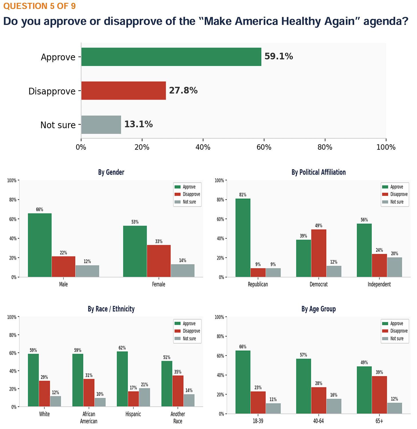 Majority approval for the “Make America Healthy Again” agenda (59.1%).
