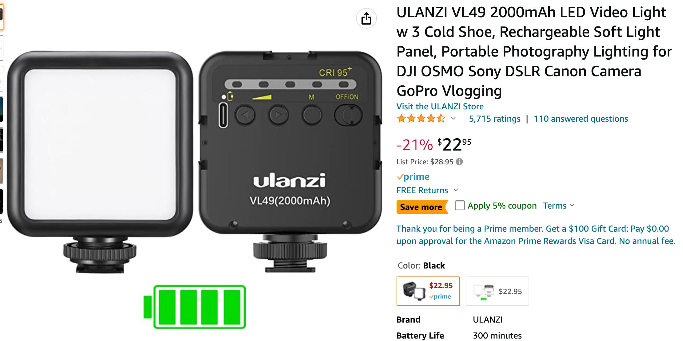 Portable battery powered lighting is a problem if you are going to broadcast video from the cell. These little lights work great for me. I attach one to the tripod with the cell and set the other up to provide lighting from below so that my brow ridge looks a bit less Neanderthal.