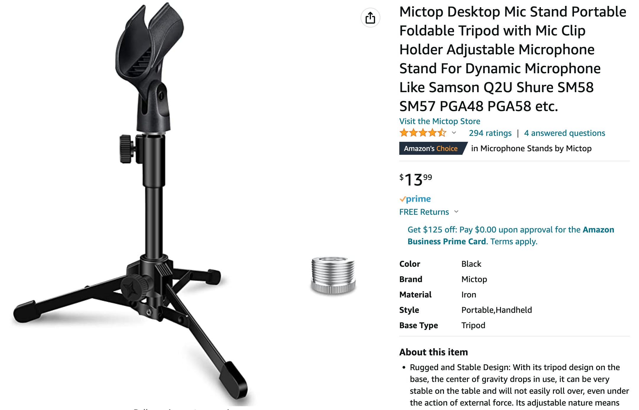 And finally, there is the issue of finding a small, solid, low-cost portable tripod that can handle the weight of the SM7b mic without filling up your backpack. I have had absolutely no problems with this one.