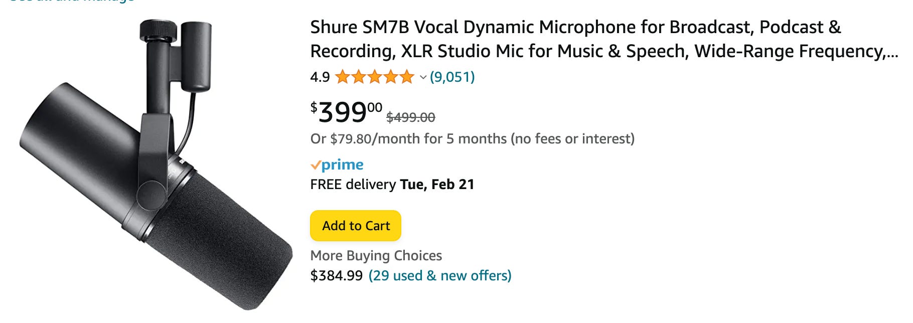 The beating heart of this assembly is the Shure SM7b microphone, which has become pretty much the “Podcast” gold standard all over the world. Pretty sure this is the same mic that Joe Rogan uses, as do many, many others. With the proper add ons, this mic can give you the high quality audio (and pro timbre to your voice) that pleases both listeners as well as broadcast producers, and using a mic like this can set those that are really serious about new/alternative media broadcasting apart from the average person who uses Zoom or Skype via their cell phone or laptop microphone. At $399, this may seem like a lot, but it will make a huge difference for you.
