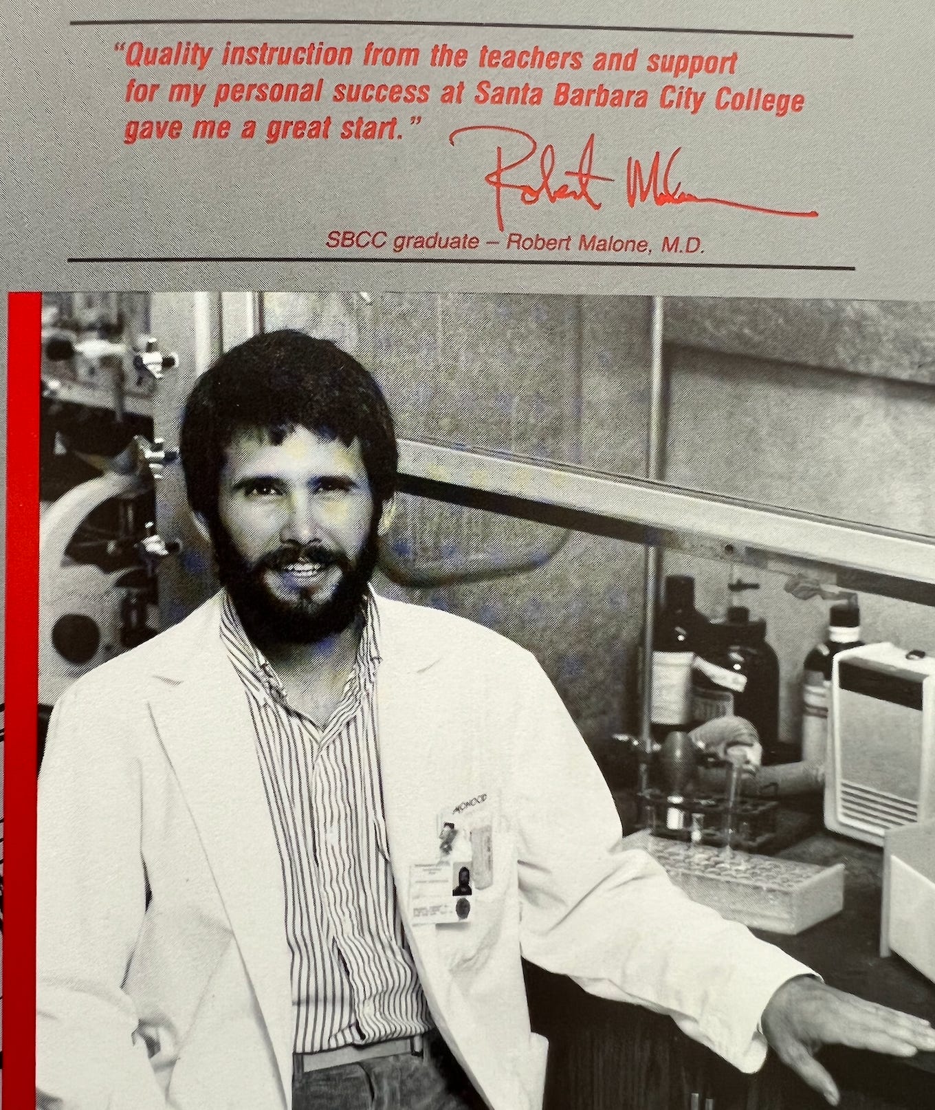 In the 1990s, after I finished my MD and had become somewhat “famous” for inventing DNA/RNA vaccines - (when all the world cared about about was the DNA vaccines), Santa Barbara City College (SBCC) had promotional brochures made to help convince people to donate to the college building fund. Those brochures featured me heavily. Below is an image from the brochure. I was proud to support SBCC, and this was not the only time that I did so freely.