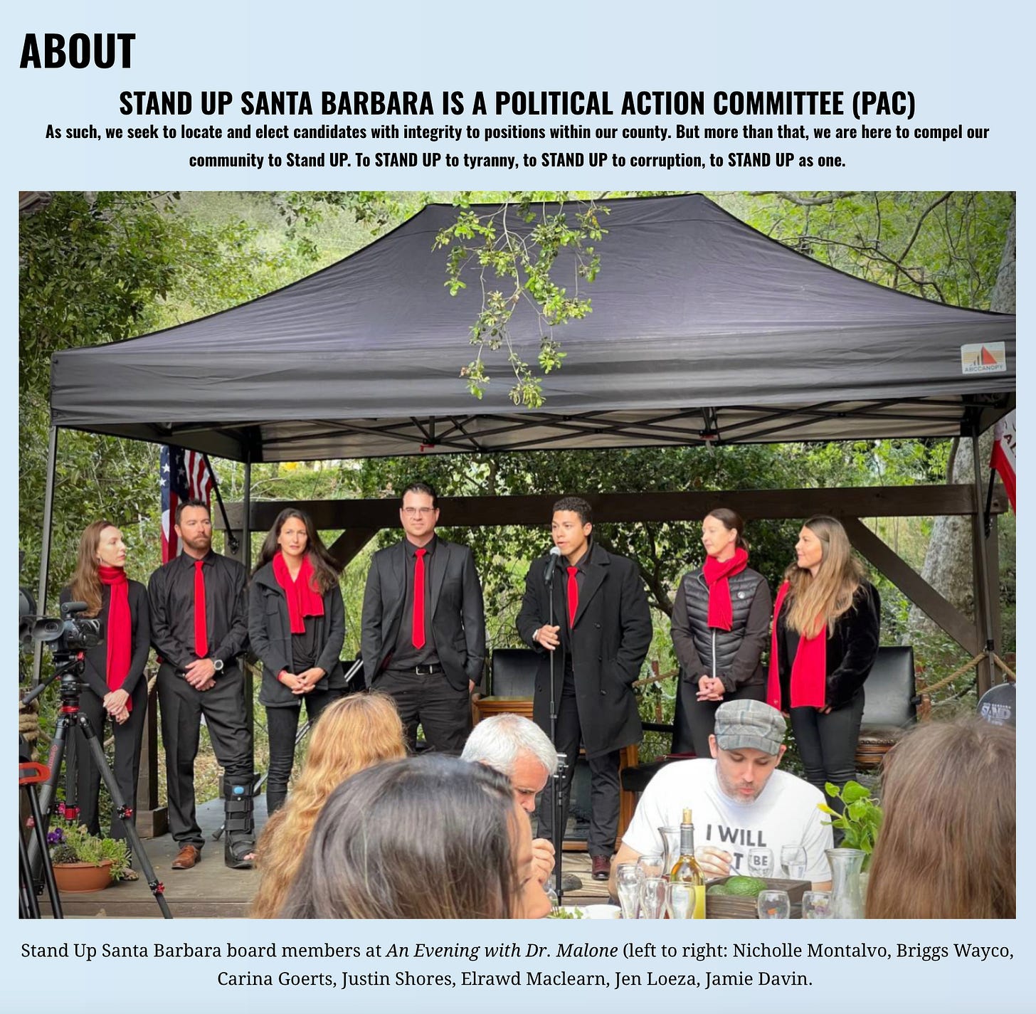 So, we had to find another venue, and the money raised instead went to a newish group called: “Stand Up Santa Barbara.” Which are basically students and supporters of SBCC who believe that corruption, including the COVID-10 vaccine mandate policies, can not be allowed to stand.
