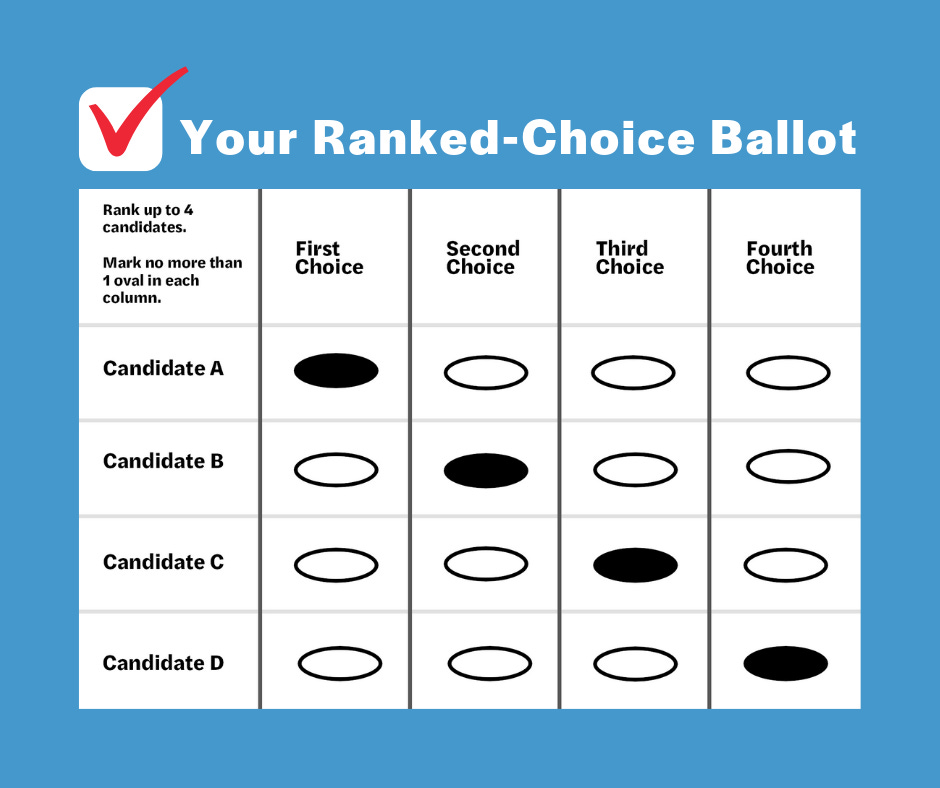 Ranked-choice voting is an instant run-off system, meaning that the winner must win the majority of the vote.