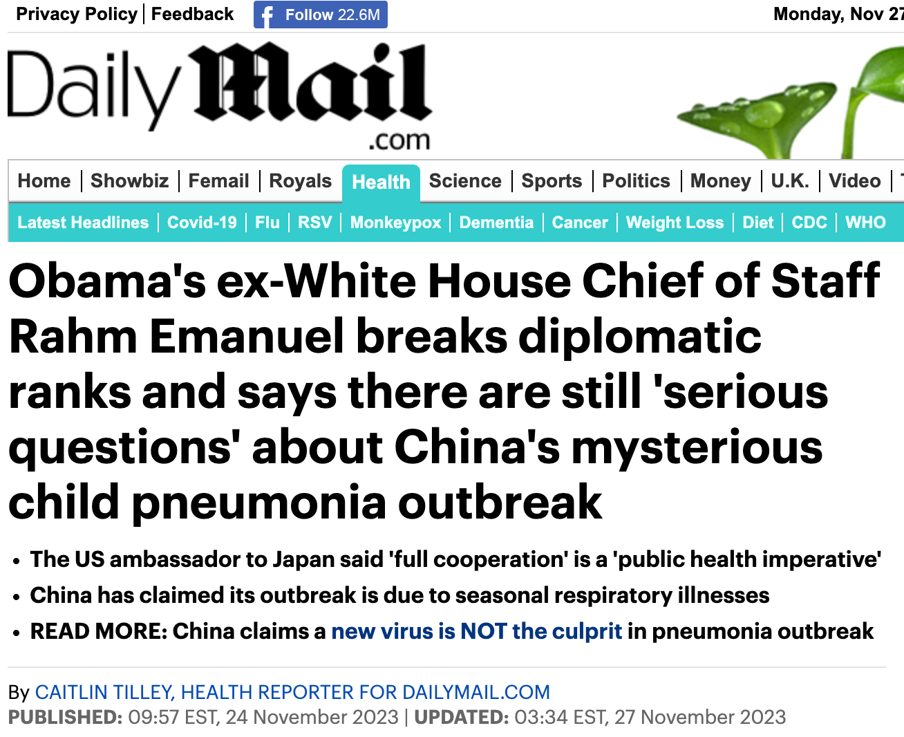 Sensing another infectious disease clickbait opportunity, the usual hack pharma-sponsored corporate media outlets and “journalists” posing as infectious disease specialists jumped on this story without bothering to really comprehend before banging out their pieces, spreading and amplifying fear for profit. This nicely fed the meme that China is a huge, mysterious source of threatening respiratory pathogens which will sweep the world and kill children. Which then lead multiple social media followers and activists to ask me to bring clarity to this situation, which in turn resulted in this substack essay.