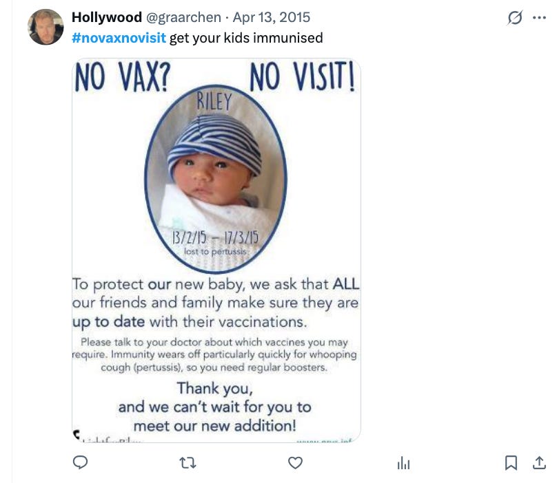 Anecdotal reports of family tension (e.g., grandparents feeling excluded or parents enforcing “no vaccine, no visit” rules) exist in parenting forums, social media, and opinion pieces, but these are more prominently associated with COVID-19 vaccine mandates or general childhood vaccination disputes rather than pertussis cocooning specifically. Although the ACIP and CDC once explicitly recommended it, the CDC now downplays the idea. These pertussis cocooning recommendations are advisory (not mandated), and enforcement is private (parental decision). Still, it is a bad idea for parents to follow these edicts, and the more alternative media can get the word out to not follow the AAP’s “advice,” the better.