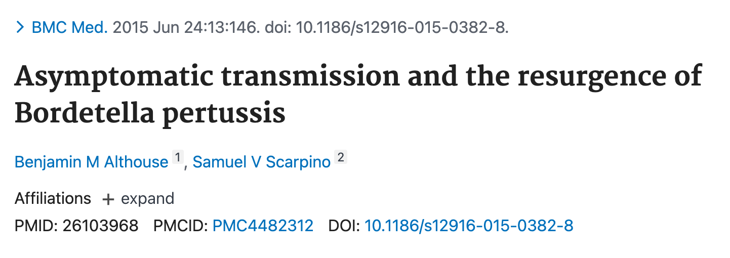 Conclusions: Although a clear role for the previously suggested mechanisms still exists, asymptomatic transmission is the most parsimonious explanation for many of the observations surrounding the resurgence of B. pertussis in the US and UK. These results have important implications for B. pertussis vaccination policy and present a complicated scenario for achieving herd immunity and B. pertussis eradication.