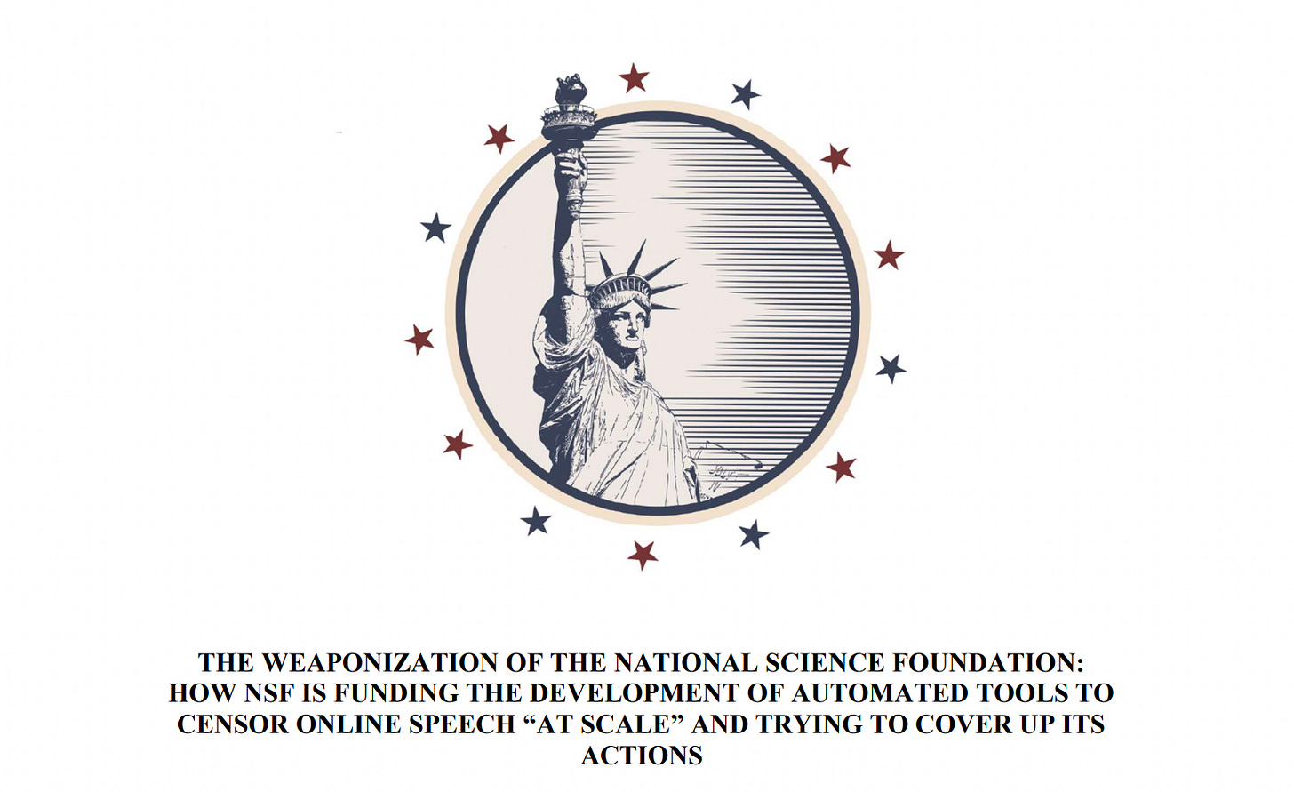 But what happens if the censorship is automated and the censors are machines? There is no need for shifts or huge teams of people to identify and flag problematic online speech. AI driven tools can monitor online speech at a scale that would far outmatch even the largest team of “disinformation” bureaucrats and researchers. This interim report reveals how NSF is using American taxpayer dollars to fund the tools that could usher in an even greater threat to online speech than the original efforts to censor speech on social media. The NSF-funded projects threaten to help create a censorship regime that could significantly impede the fundamental First Amendment rights of millions of Americans, and potentially do so in a manner that is instantaneous and largely invisible to its victims.