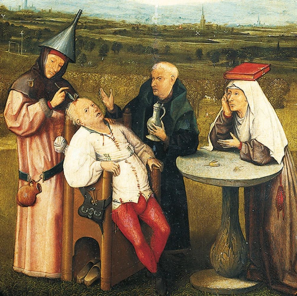 The scam has been around for centuries. This is a painting by Bosch called The Extraction of the Stone of Madness, painted 2 years after Columbus stumbled into the Caribbean.