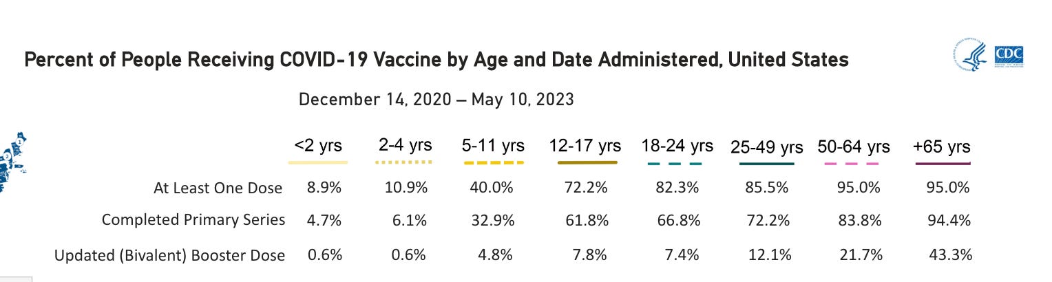 The 5-11 year olds also are no longer getting vaccinated. Less than 5% have had a booster and only 33% have completed the 2-shot series.