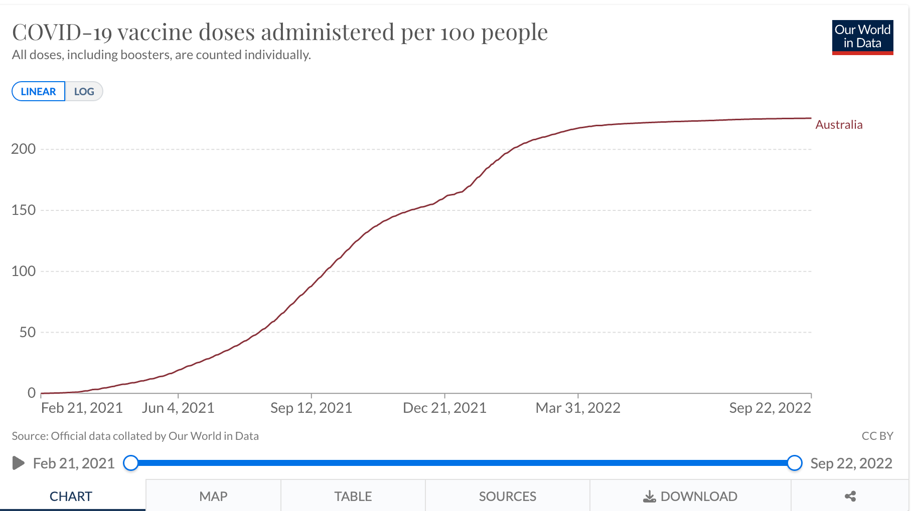 Death statistics (which unlike most countries, are now climbing in Australia and almost all deaths are in 2022) show that it is ranked as 127th out of 220 countries listed. However, those deaths are coming now in 2022, the vaccine appears to be offering little, if any protection.