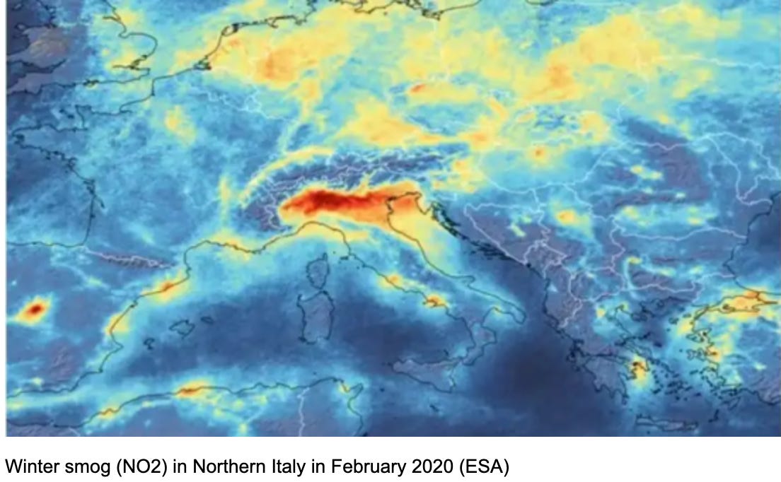 New satellite images show how Northern Italy has the highest levels of air pollution in Europe, and how this air pollution has been greatly reduced by the quarantine.
