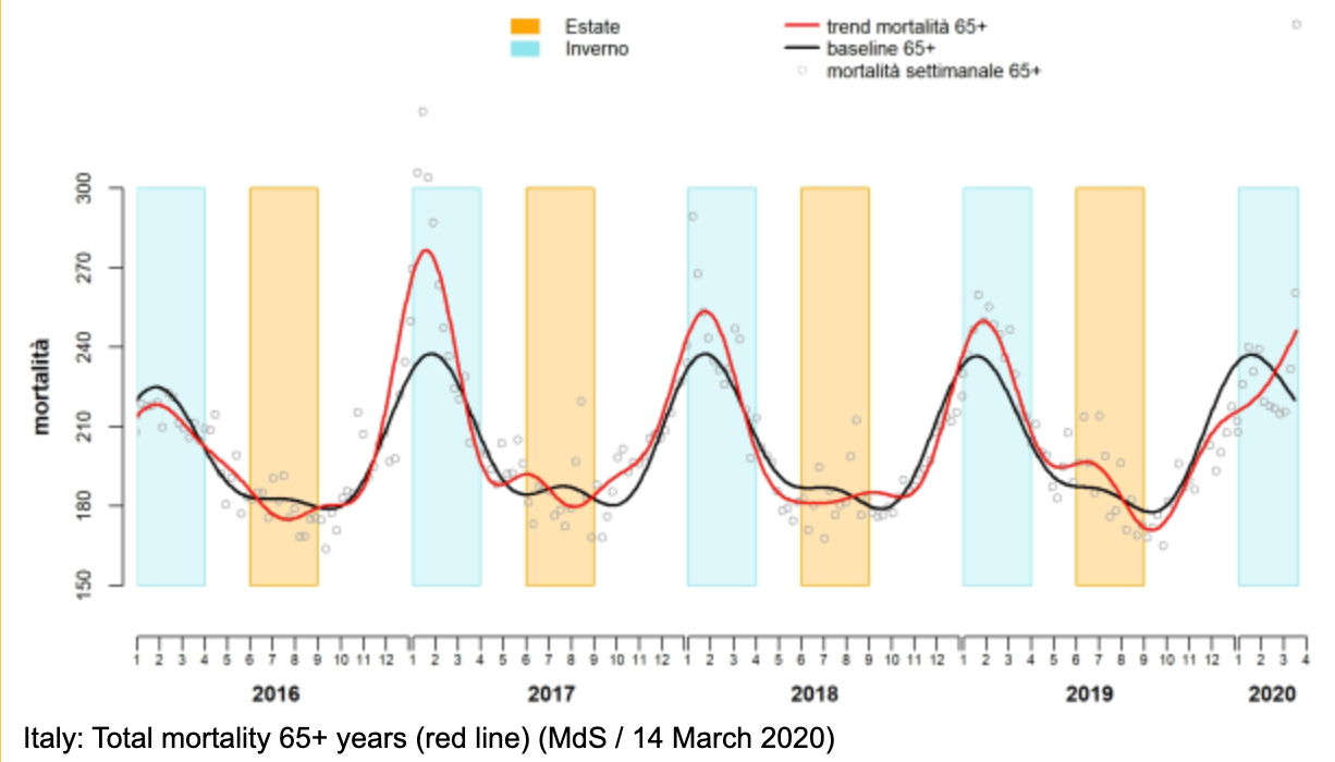 According to the latest European monitoring report, overall mortality in all countries (including Italy) and in all age groups remains within or even below the normal range so far.