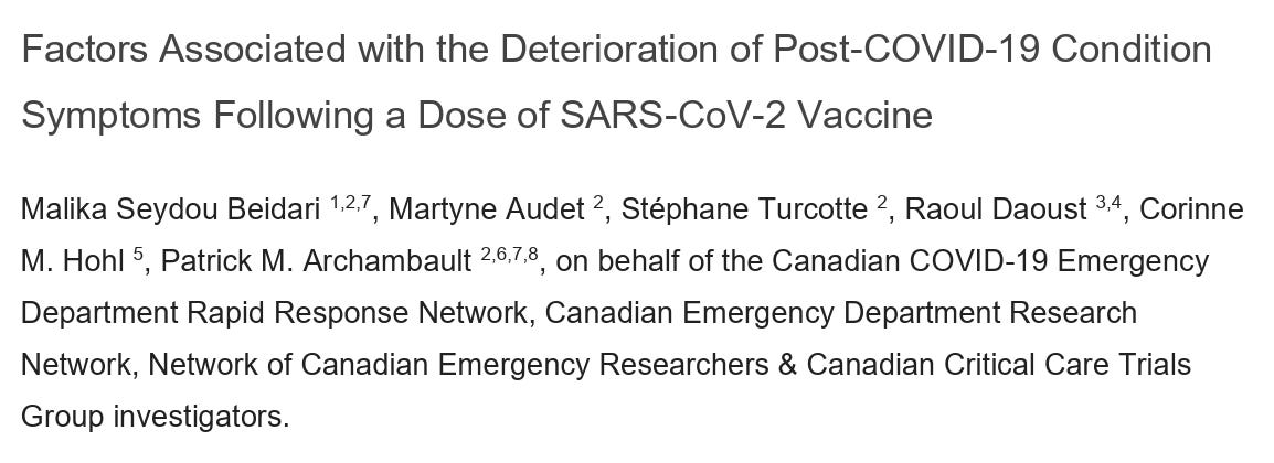 Led by Malika Seydou Beidari along with emergency medicine professor Patrick M. Archambault and investigators across the Canadian COVID-19 Emergency Department Rapid Response Network (CCEDRRN) (including Université Laval and partners), a preprint reports a multicenter Canadian cohort study asking a pointed question: among adults who already met the WHO definition of post-COVID-19 condition (PCC) or long COVID, what factors predict symptom deterioration after a SARS-CoV-2 vaccine dose given ≥90 days post-infection? In 476 PCC patients followed by telephone questionnaires, 28.8% (137/476; 95% CI 24.7–32.9%) reported worsened PCC symptoms after vaccination, while 71.2% reported no change or improvement. In adjusted models, deterioration was associated with Moderna (mRNA-1273) (aOR 1.81; 95% CI 1.15–2.84) and persistent cough at vaccination (aOR 1.87; 95% CI 1.06–3.26). If confirmed, this challenges the simplified public narrative that vaccination uniformly improves established long COVID—suggesting heterogeneous, patient-profile-dependent responses.