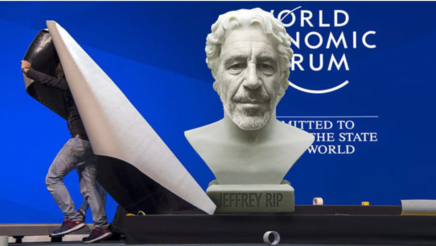 AFTER … pretending to give a shit about what Greta Thunberg had to say about the environment, emotional billionaires in attendance at Davos turned their focus to honouring friend, fixer and epic orgy organiser Jeffrey Epstein as the annual knees up drew to a close.
