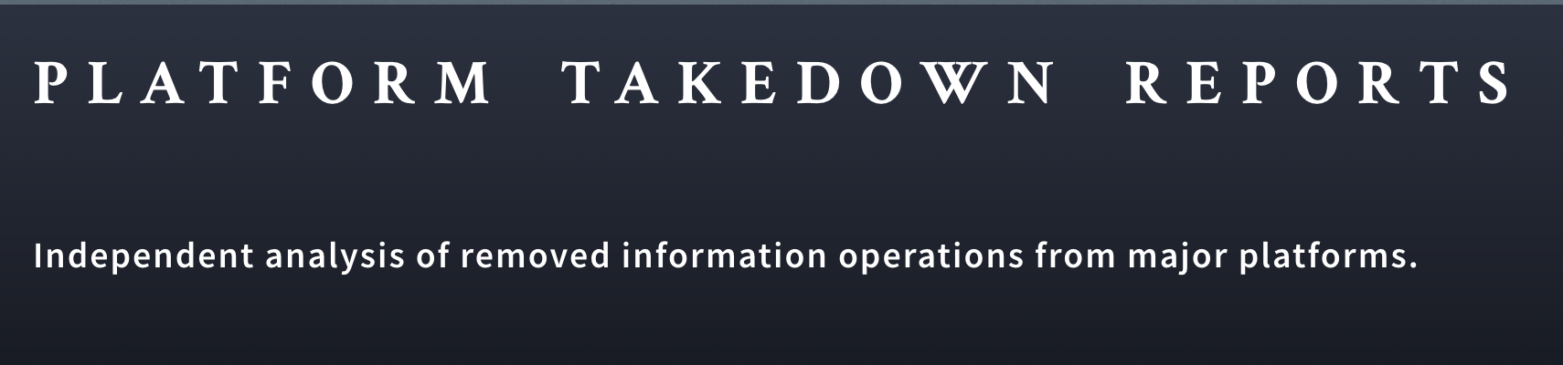 The Stanford Internet Observatory (SIO): Stanford has removed the SIO page from their website, although the way back machine has a somewhat functional archival copy.