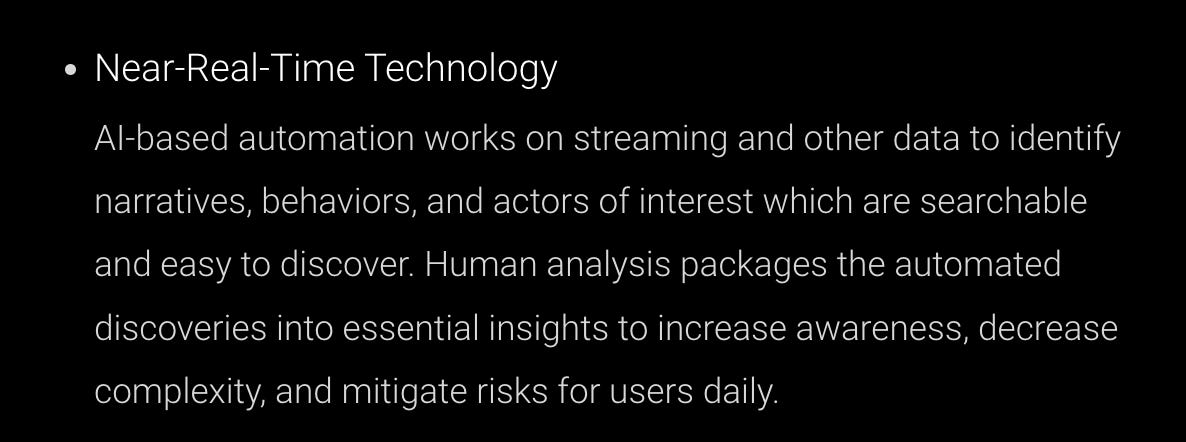 This is a company that specializes in “cutting-edge technology that creates large-scale explorable maps of social media landscapes”. Their in-depth analysis reveals insights to help “clients and partners understand complex online networks and take decisive action”. Graphika lists Harvard, Oxford and DARPA (DARPA = CIA) as its partners.