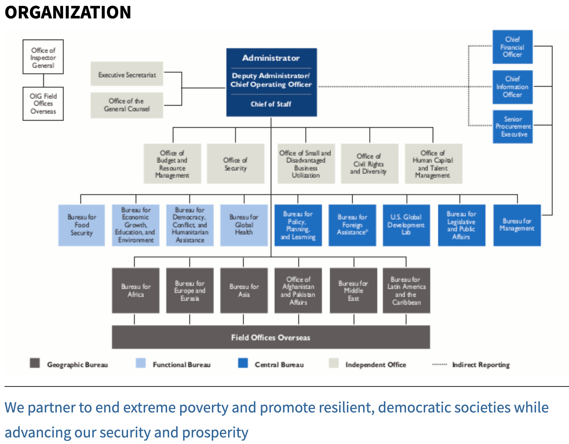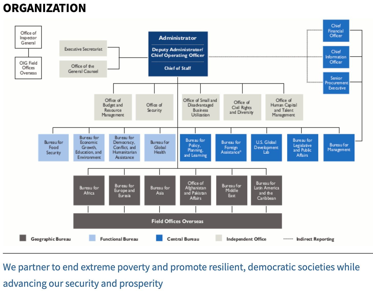 The United States Agency for International Development (USAID) is (was) an independent agency of the United States government. Current indications are that it may be the first agency defunded by the new Trump administration, in part consequent to investigations by the DOGE initiative (Department of Government Efficiency). The agency defines (or defined) its mission as “We partner to end extreme poverty and promote resilient, democratic societies while advancing our security and prosperity.” Historically, the chain of command for USAID does not follow the military chain of command but rather is structured within the executive branch of the U.S. government. USAID operates under the President's guidance and is directly overseen by the Secretary of State with support from the National Security Council. The President has ultimate authority and responsibility, followed by the Secretary of State, overseeing USAID's operations and policy guidance. So while USAID is historically separate from the State Department, both ultimately separately report to the Secretary of State.