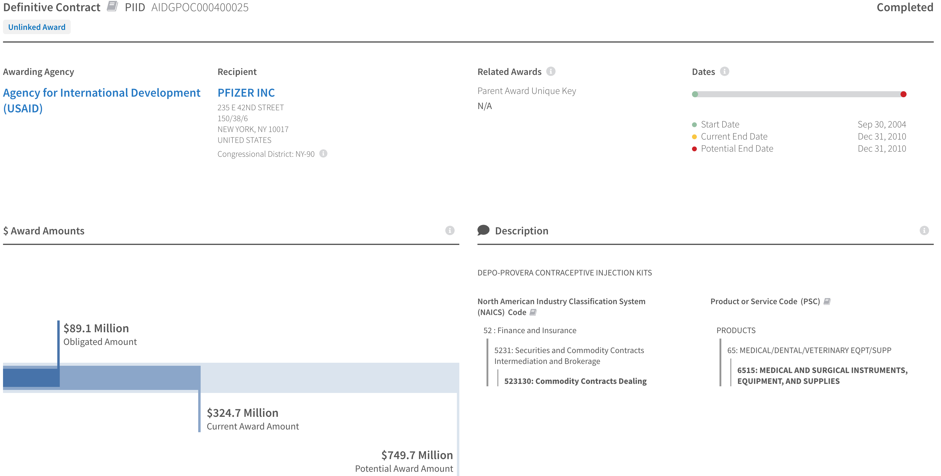 With two successive contracts, USAID funded Pfizer to provide Depo-Provera for international distribution.