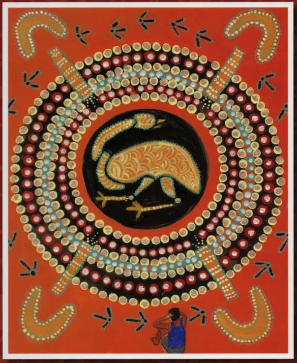 Cover art from the book “Emu Dancing” written by Leesa Smith, illustrations by Debbie Taylor. Published by Goanna Tales. Currently unavailable via Amazon, sorry about that.