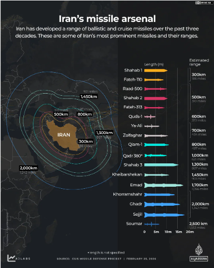 The above image from Al Jazeera doesn’t even take into account the missile which Iran shot towards Diego Garcia, over 4,000km away
