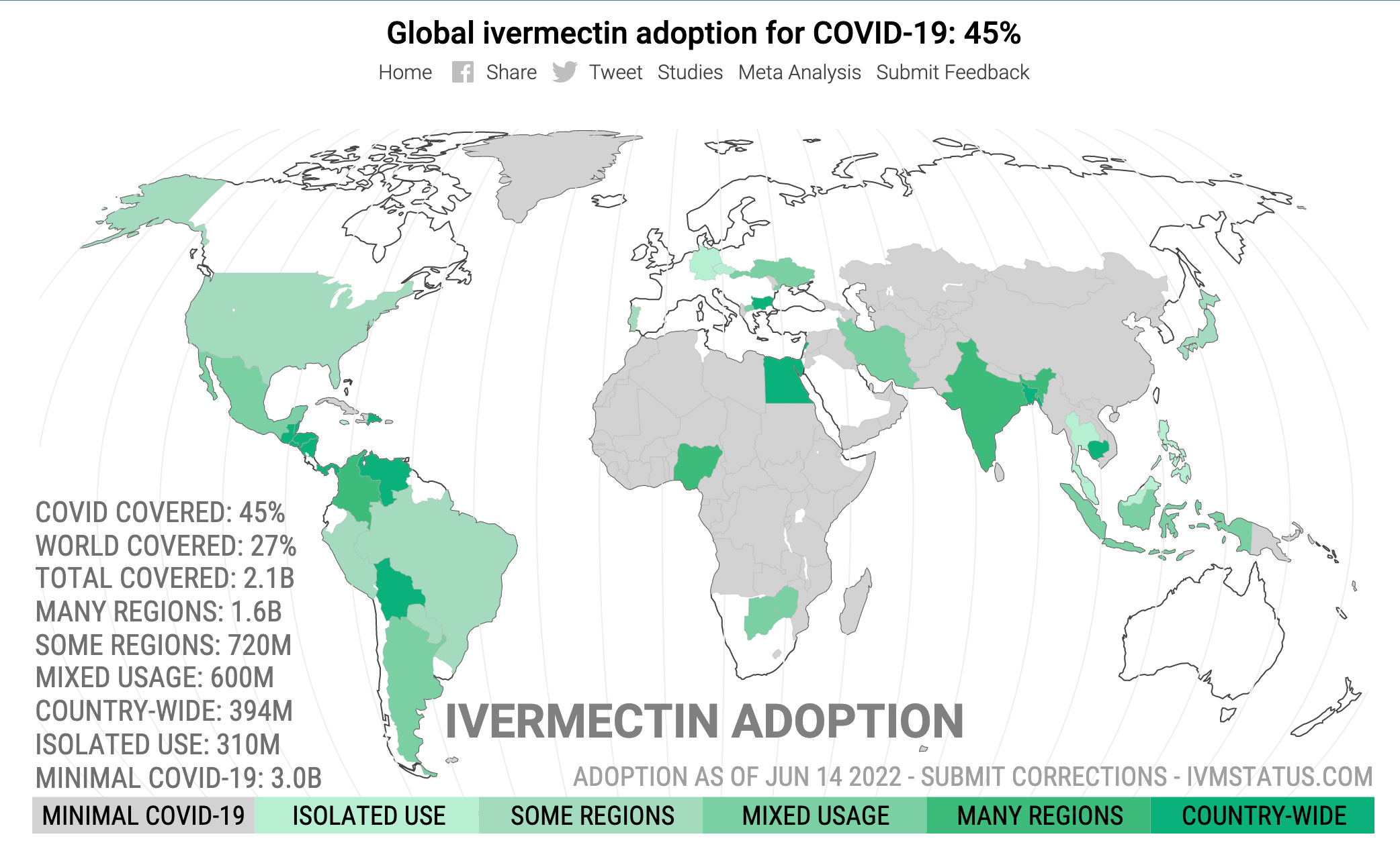 There is no question in my mind that early COVID-19 treatment saves lives, and many different repurposed drug treatment protocols for treating this disease have become popular despite withering criticism and gaslighting from FDA, NIH, corporate media and hospitalist physicians. For example treatment protocols, see those developed by FLCCC, Dr. Vladimir Zelenko, Drs. George Fareed and Brian Tyson , and the European doctors who practice under the banner of Ippocrateorg.org. In just one example, while in the USA Ivermectin has been vilified by both FDA and the press, worldwide adoption of Ivermectin for treatment of COVID-19 disease is now at 45%!