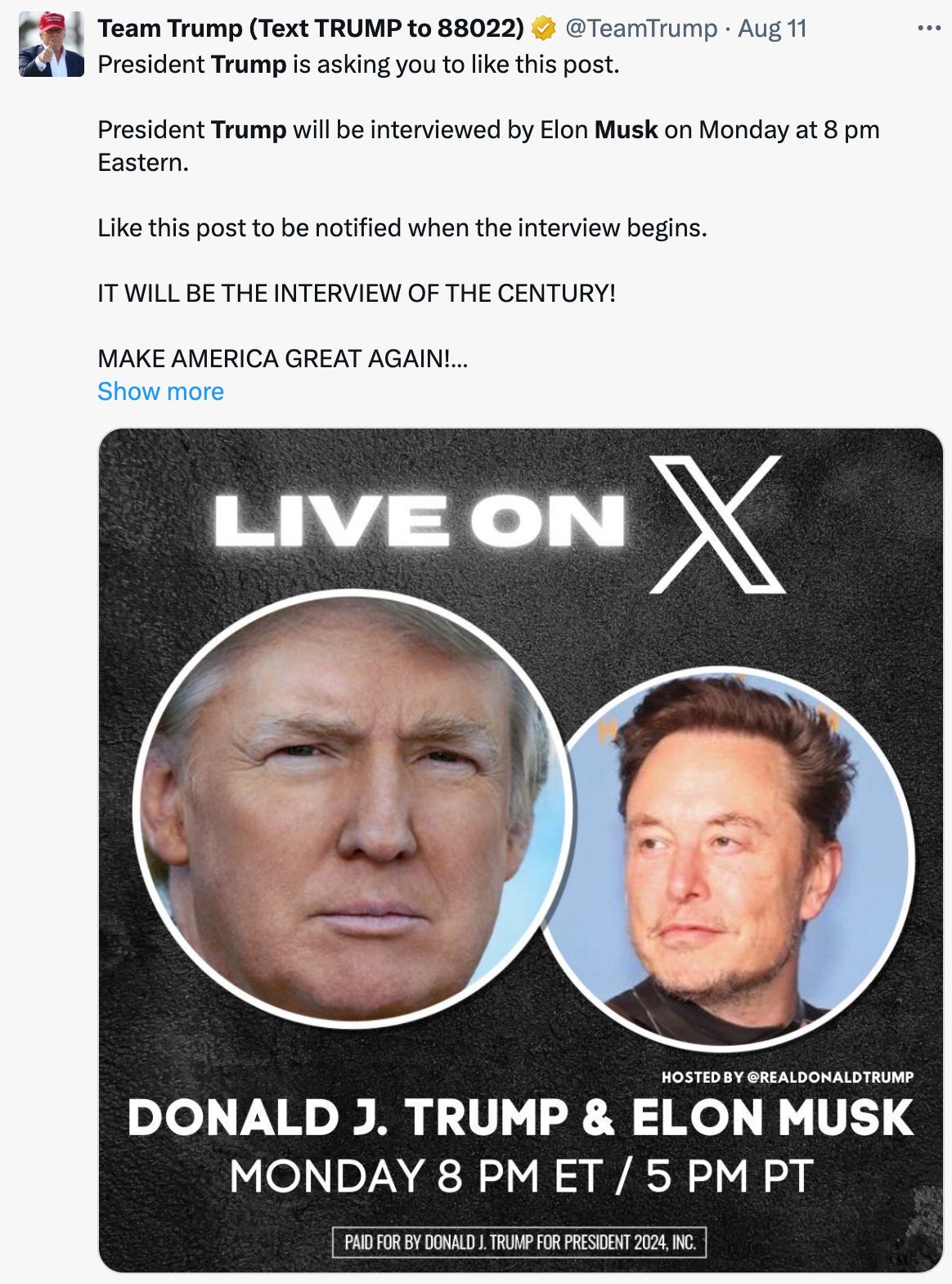 President Trump - Musk X Spaces discussion compromised by massive DDOS attack -