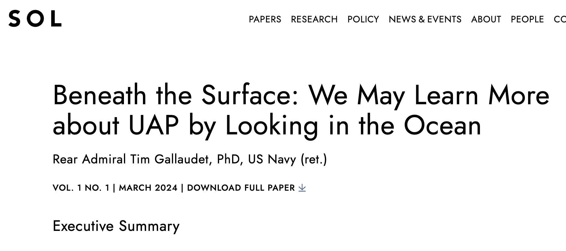 The Sol Foundation started publishing papers. Interest has increased in transmedium USOs (unidentified submersible objects) - craft that can travel in water and air.