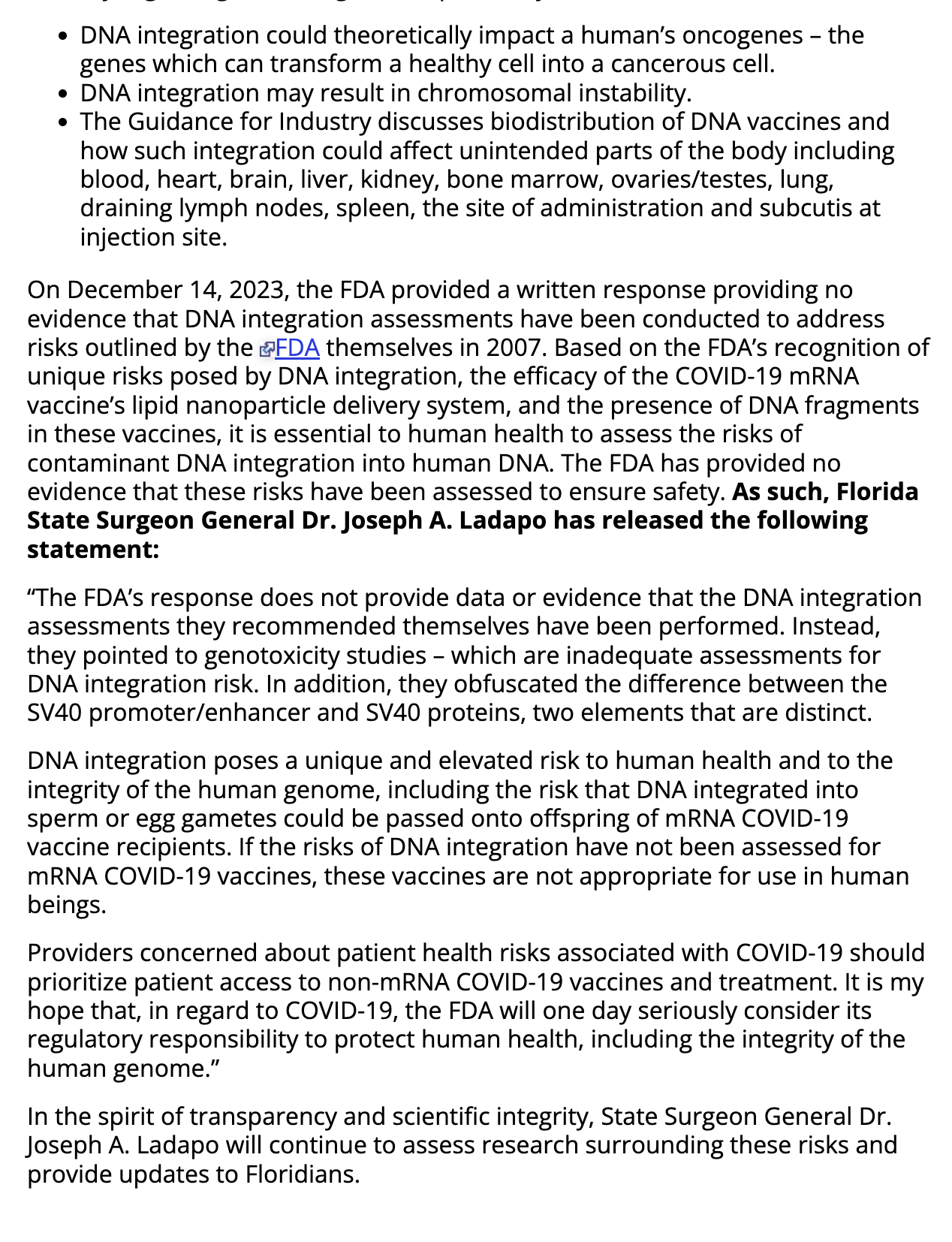 Below is the official statement from Florida Surgeon General Joe Ladapo calling for a halt on the use of mRNA Vaccines.