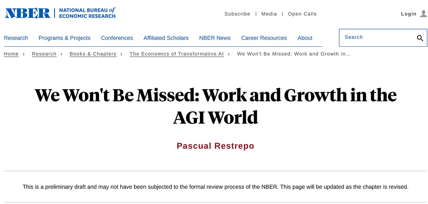 Restrepo argues that in the upcoming AGI-driven economy, humans “won’t be missed” economically. Growth and production would continue unabated without human effort. Traditionally, work provides not just income but purpose and societal contribution; AGI severs this link, raising profound questions about meaning, redistribution (e.g., beyond simple universal basic income), and redefining human value outside economic productivity.