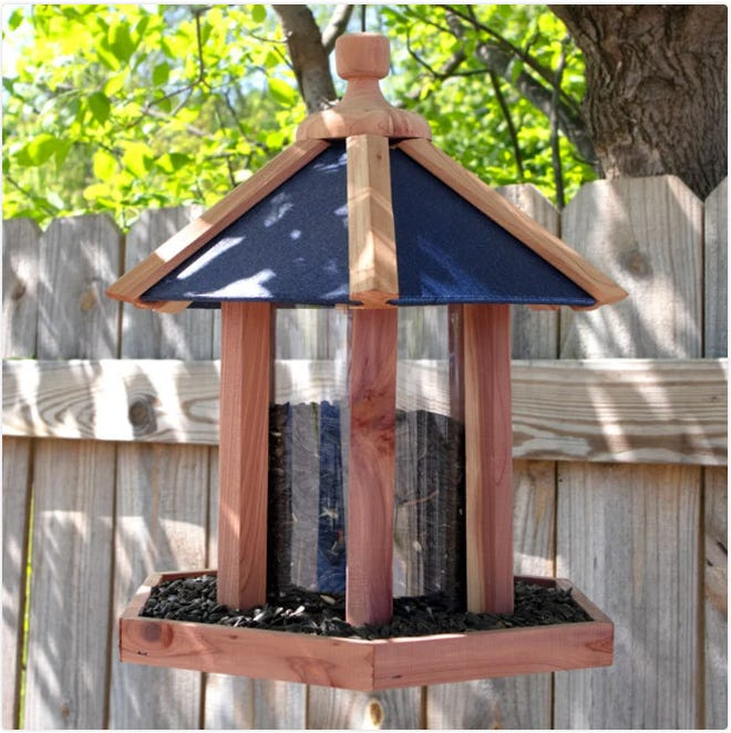 Oh yeah, and we did finally break down and buy two amish-made bird feeders from Etsy. Not made in China. How refreshing