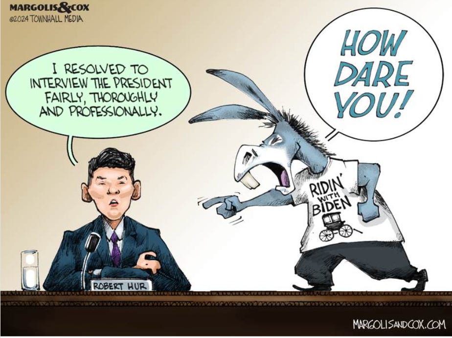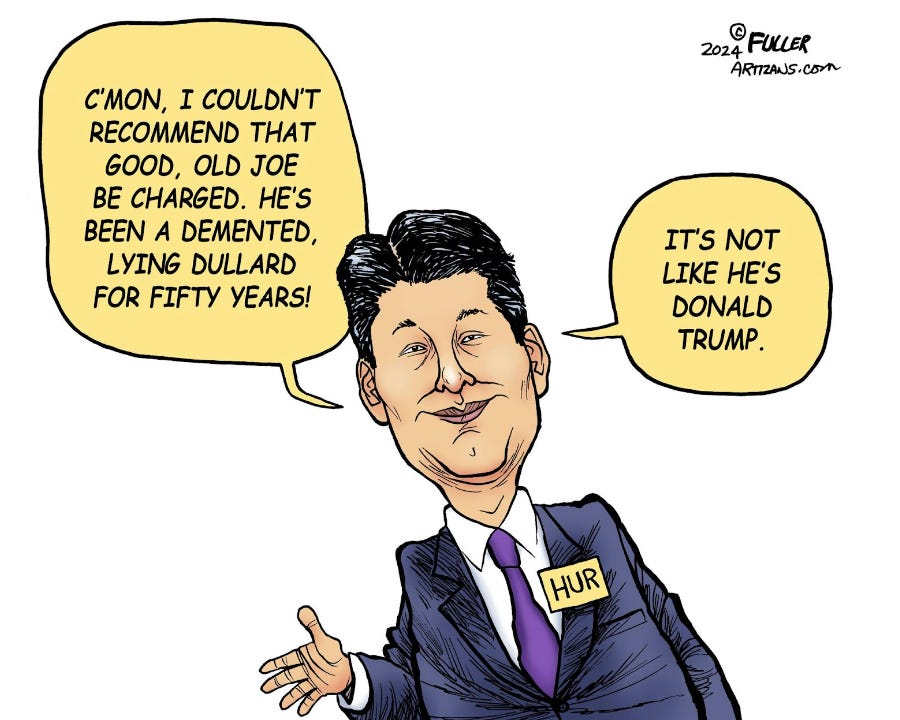 That statement is hogwash. If some lame excuse, such as how the excuse that a jury would find Biden too old to be convicted was used to let Biden off the hook- then Mr. Hur doesn't have to ask the hard questions, does he?