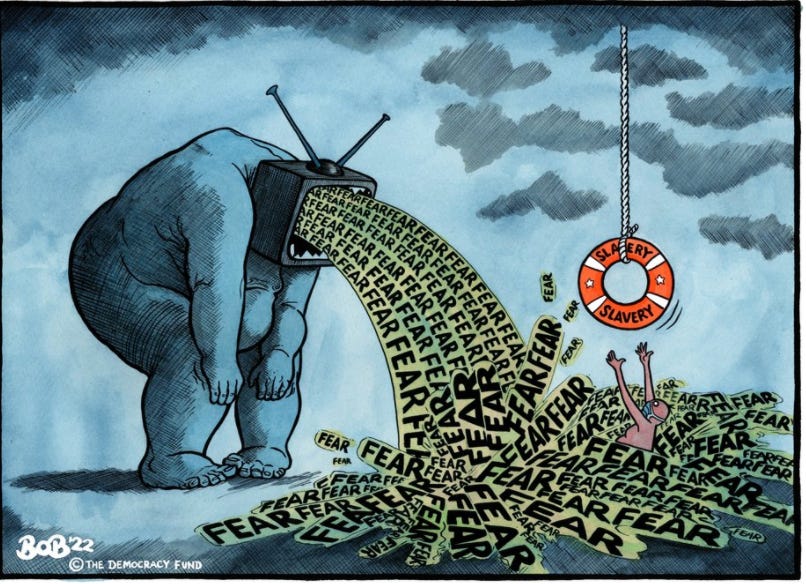 And WOW, that Bob television-vomiting cartoon with the slavery lifesaver sums the entire past two years (and beyond) in a nutshell.