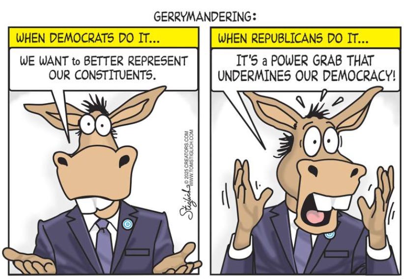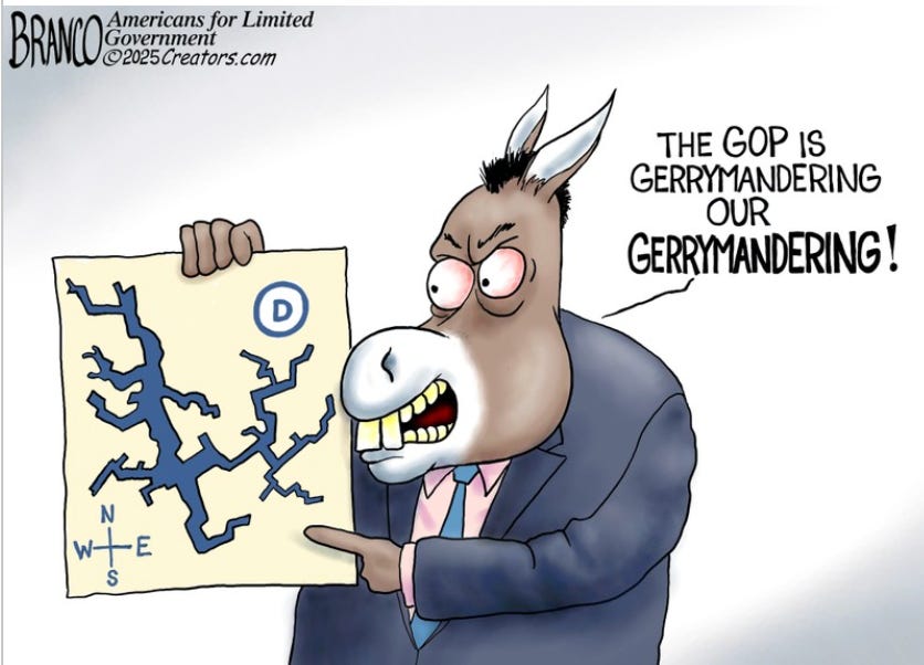 On a lighter note, I’ve heard clips of Maura Healy speaking out about the gerrymandering that absolutely should happen in Texas, talk about irony. BTW did you know Maura Healy was attorney general of Ma. before becoming governor. In her race for governor it came out she was having relations with 3 female state police officers some on her detail, what good judgement, but let that go. Massachusetts has been cut up into the craziest shaped counties so not to allow republicans to have a voice. Norfolk county goes from the border of Boston (Wellesley, Newton, Dedham) all the way to one town away from Rhode Island, this to dilute republican towns representation. Trump lost the state of Massachusetts 60% to 40% but of the 9 representatives and 2 senators sent to Washington DC there are 0 republicans. We see this in Democrat state after Democrat state. Democrats are exactly like toddlers (though dangerous) who start screaming crying when they don’t get their way. What it comes down to is they are gluttons for power. They just aren’t used to people like Donald Trump who plays to win. And one more thing.