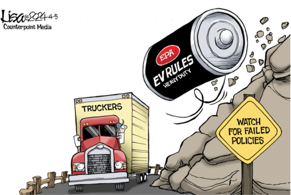 EPA’s new emissions standards for heavy-duty trucks will effectively require that electric semi-trucks make up an increasing share of manufacturer sales from 2027 through 2032, similar to its recent rule for passenger cars. The difference is that the truck mandate is even more costly and fanciful.