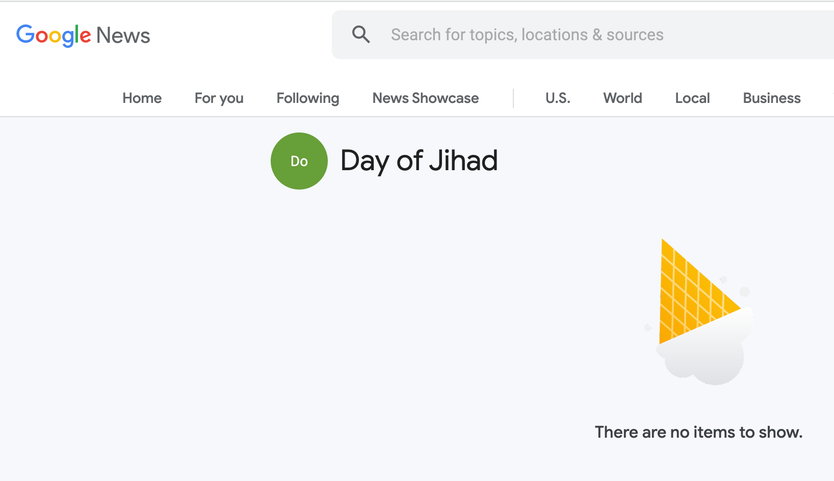 At first, I wasn’t sure if it was fake news… So, I googled Day of Jihad on Googlenet news - this is what I got.