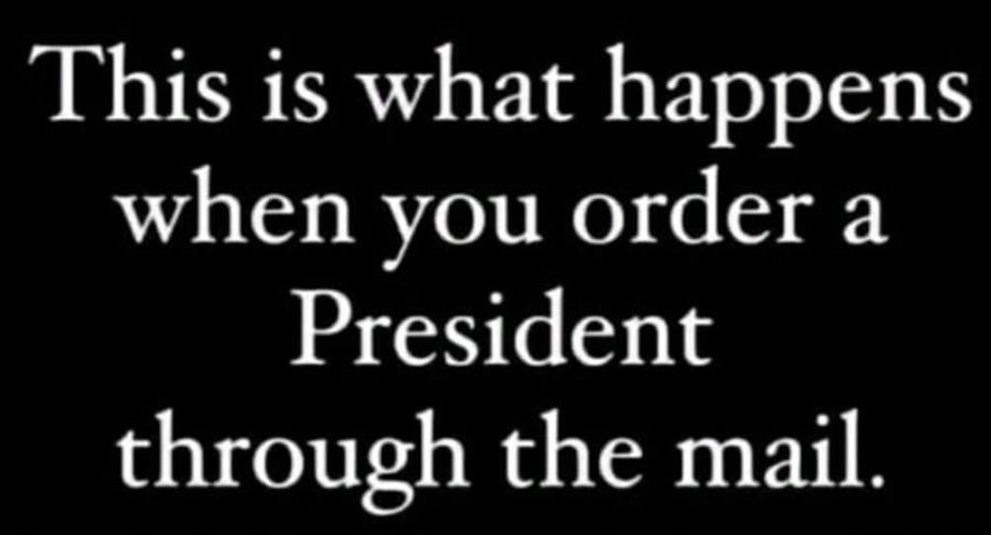 "This is what happens when you order a president through the mail" BRILLIANT 😂😂