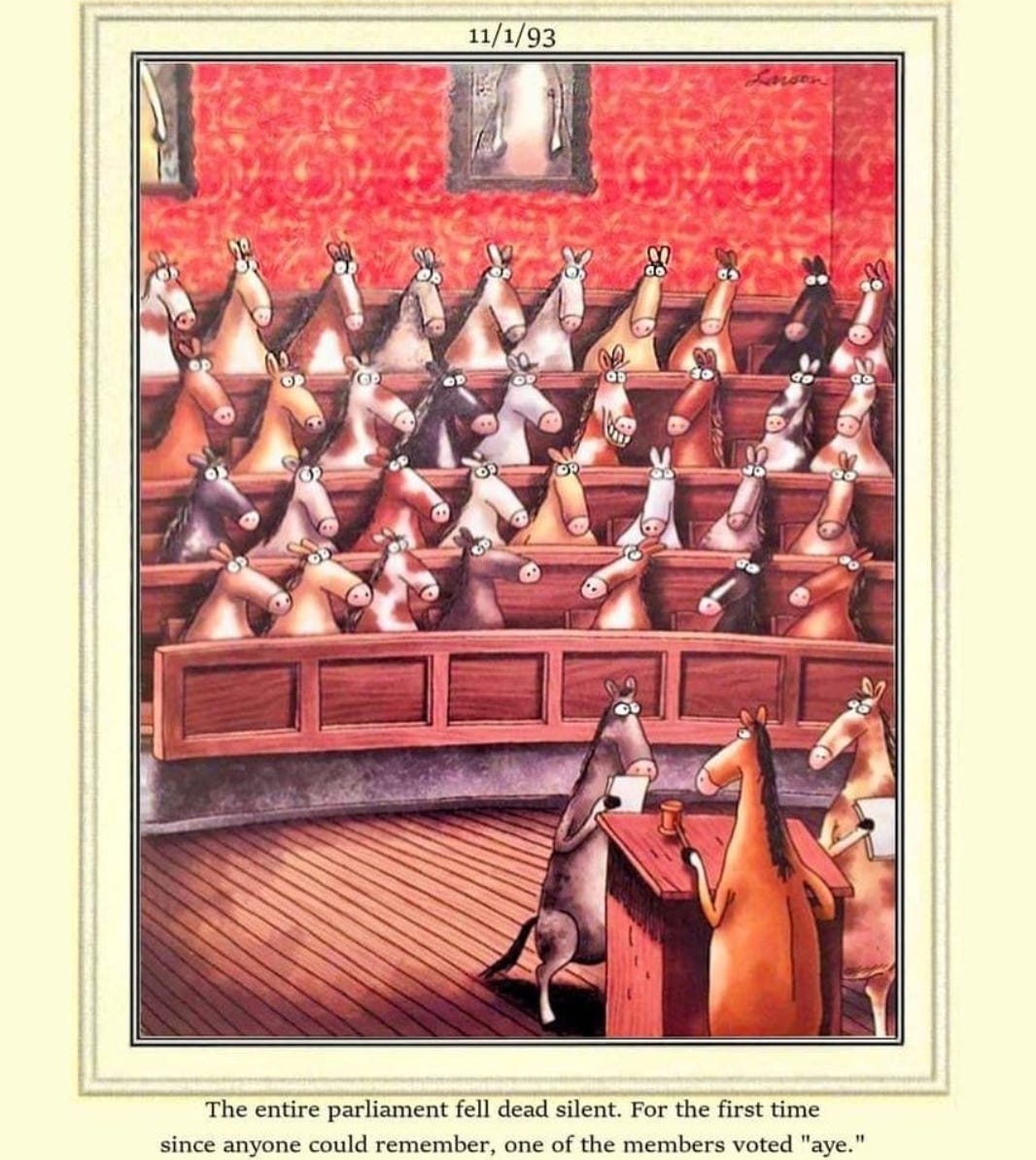 Of course, it's unprecedented, horses in Parliament always vote "neigh."
