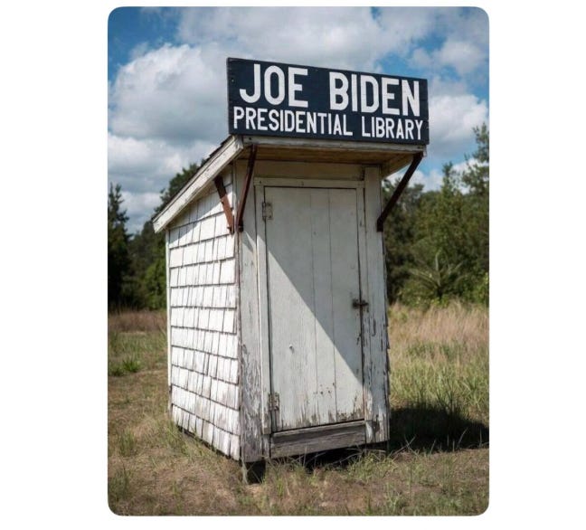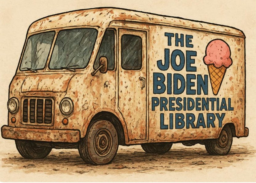 Funny Funny Funny. I love the old ice cream truck as The Joe Biden Presidential Library!!!