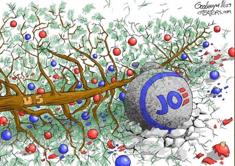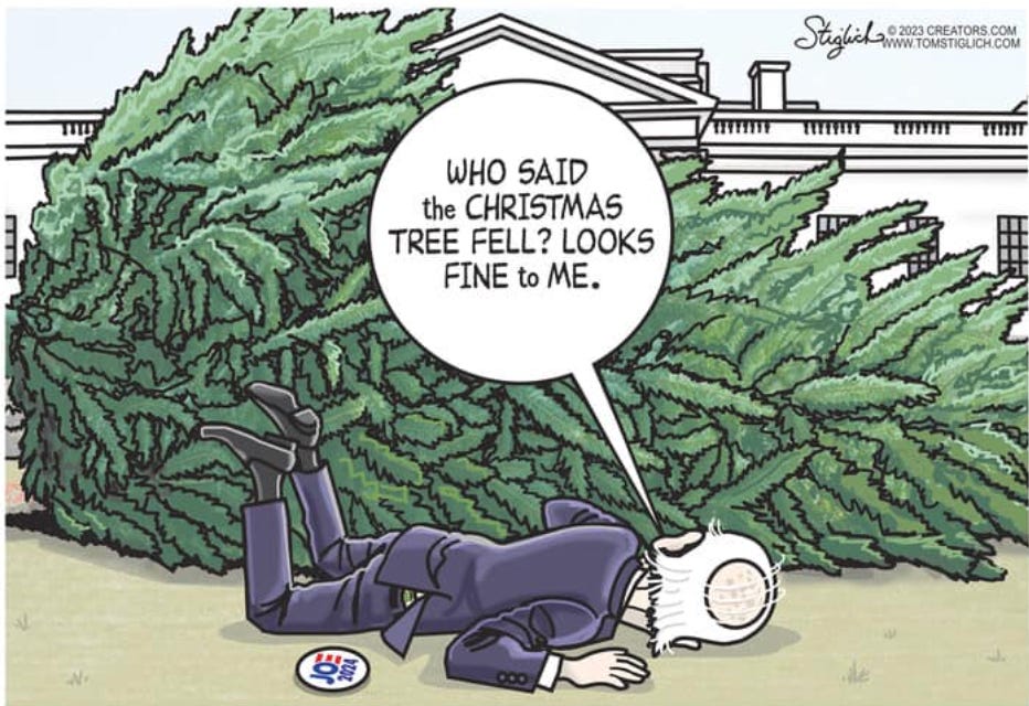 Xiden fallen over with the tree calling it fine is hilarious and on target, thank you.
