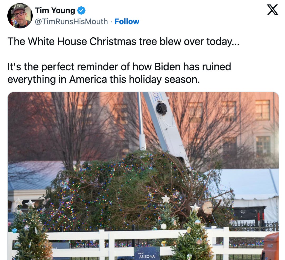 White House Christmas tree falling called a 'metaphor' for Biden: 'It makes sense' (Fox News)